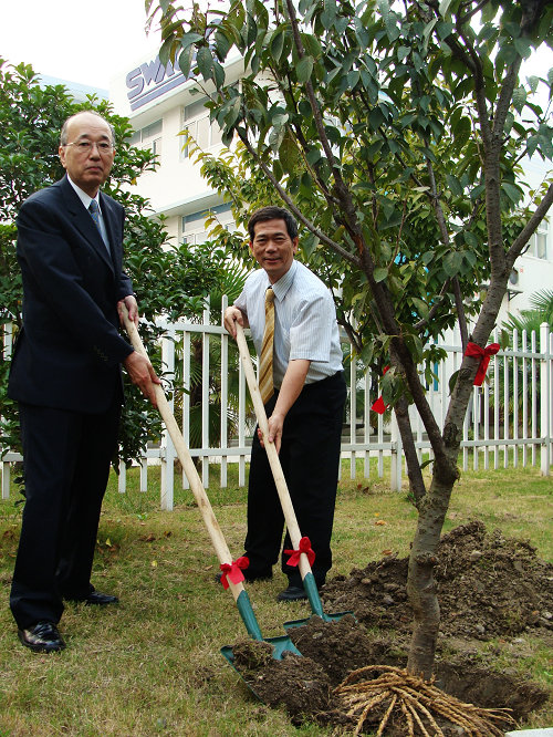 熱烈歡迎野口制作所野口真司會(huì)長來我公司指導(dǎo)! 我公司董事長與野口會(huì)長同種櫻花樹,預(yù)祝我們合作愉快,中日友好!